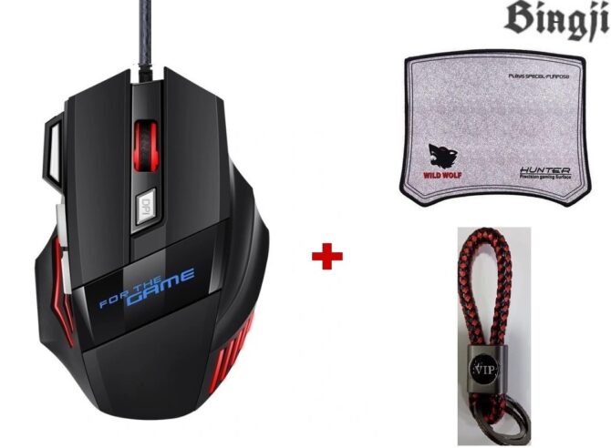 biagji Souris avec Fil Fighter X6S Macro RGB Pro Gaming+Tapi wolf+ porte cle multicouleur