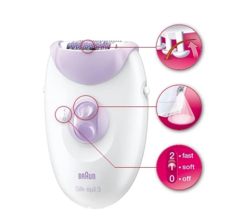 Braun Silk-épil 3 3170 Blanc Violet 20 pince(s) Secteur 100 – 240 V Batterie intégré 12 V