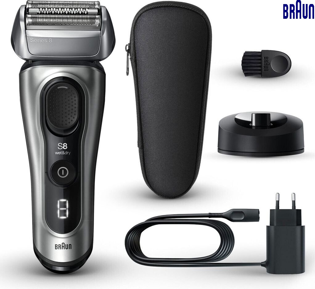 Braun Rasoir electrique Series 8 8517s Pour Homme 4 Éléments De Rasage, Tondeuse De Précision Intégrée, Base De Recharge, Étanche, 60 Min D’Autonomie Fabriqué En Allemagne