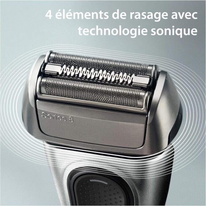 - Rasage de près en douceur : les 4 éléments de rasage avec la technologie sonique offrent un rasage de près qui est doux, même sur les barbes épaisses