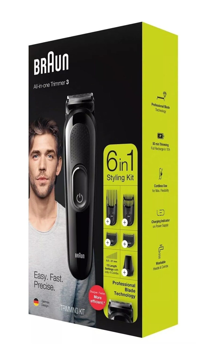 Braun Tondeuse tout-en-un 6en1 MGK3225 à cheveux barbe- tête avec lames tranchantes à vie