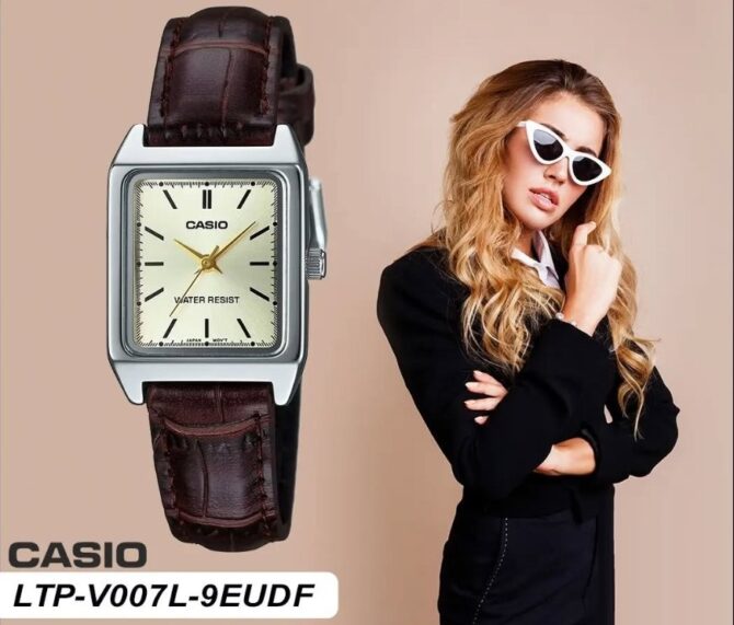 Casio Montre à bracelet en cuir rectangulaire pour femme Analogique-ltp-v007l-9eudf