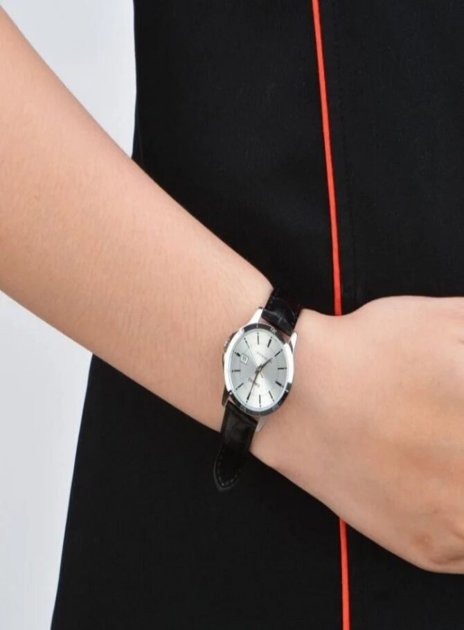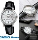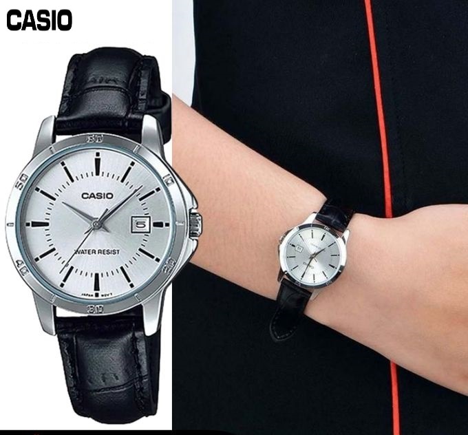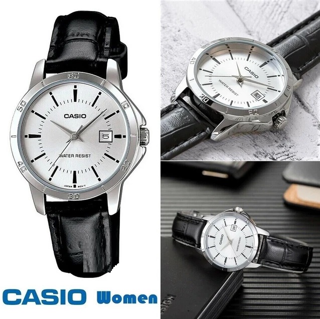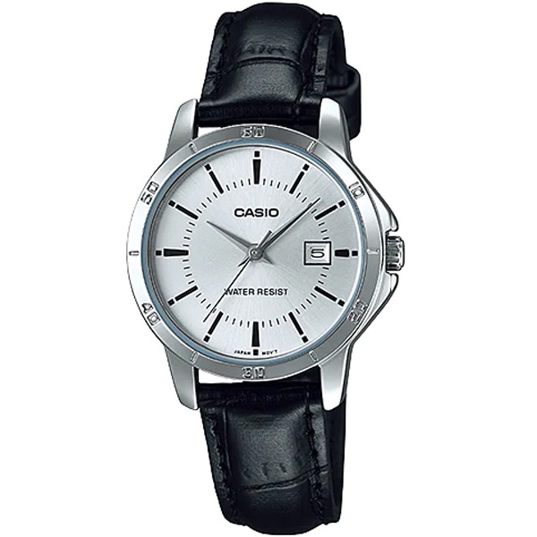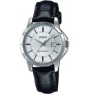 Casio Montre a bracelet en cuir ronde pour femme avec cadran blanc-ltp-v004l-7audf
