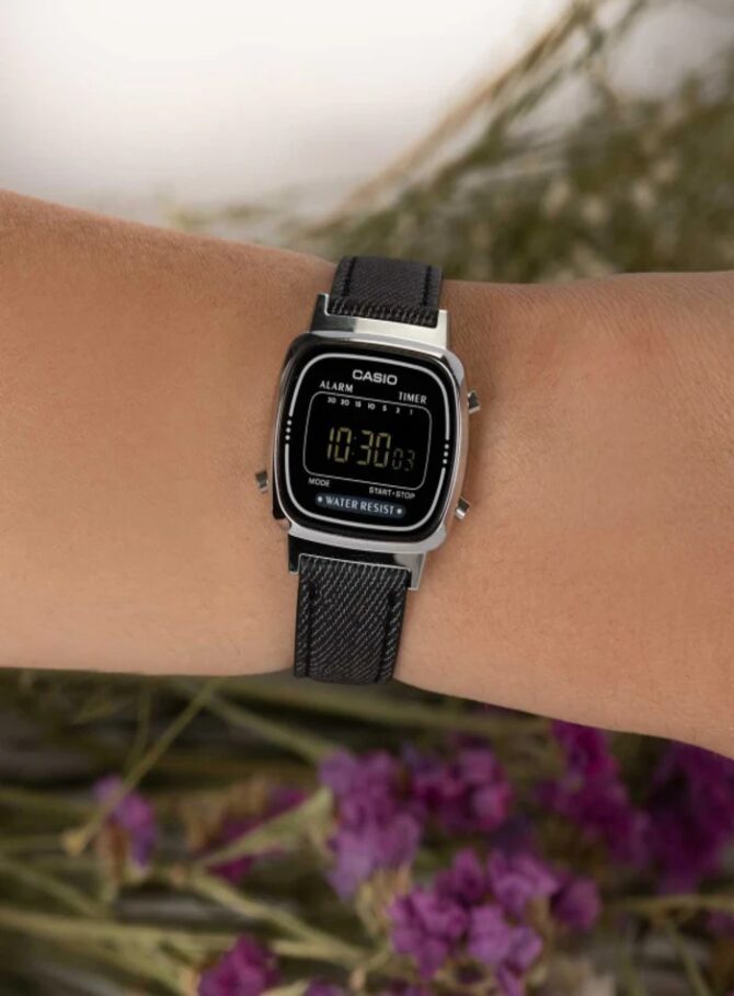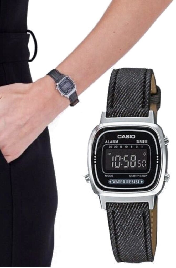 Casio Montre femme bracelet en cuir facon denim elegante numérique etanche- la670wl-1bdf