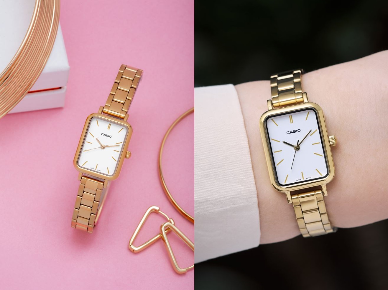 - Fermoir triple déployant, bracelet en acier inoxydable plaqué or, verre minéral, étanche,