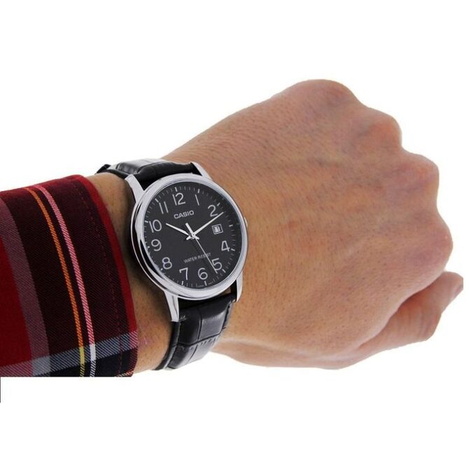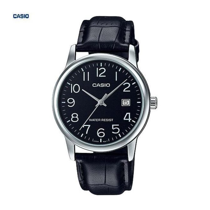 Casio Montre Homme Bracelet en cuir Cadran noir 3aiguilless Étanche-mtp-v002l-1budf