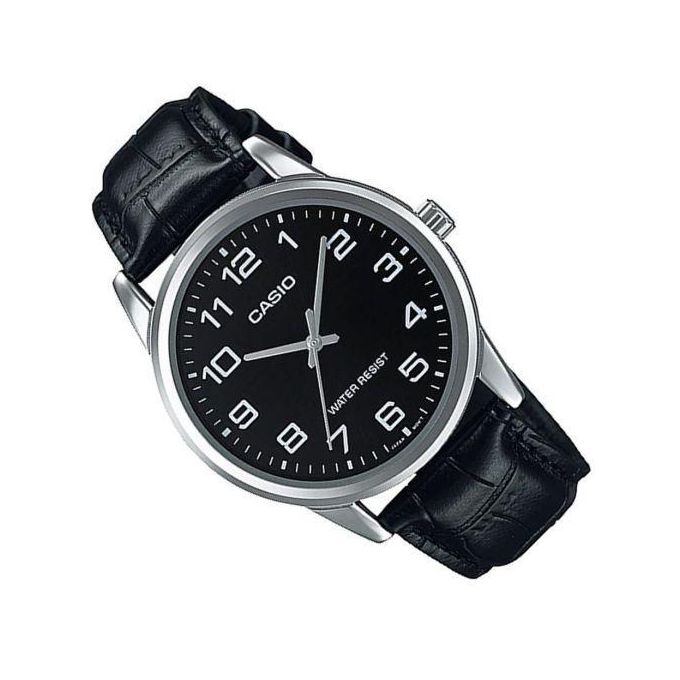Casio Montre Homme Bracelet en cuir Cadran noir 3aiguilless Étanche-mtp-v002l-1budf