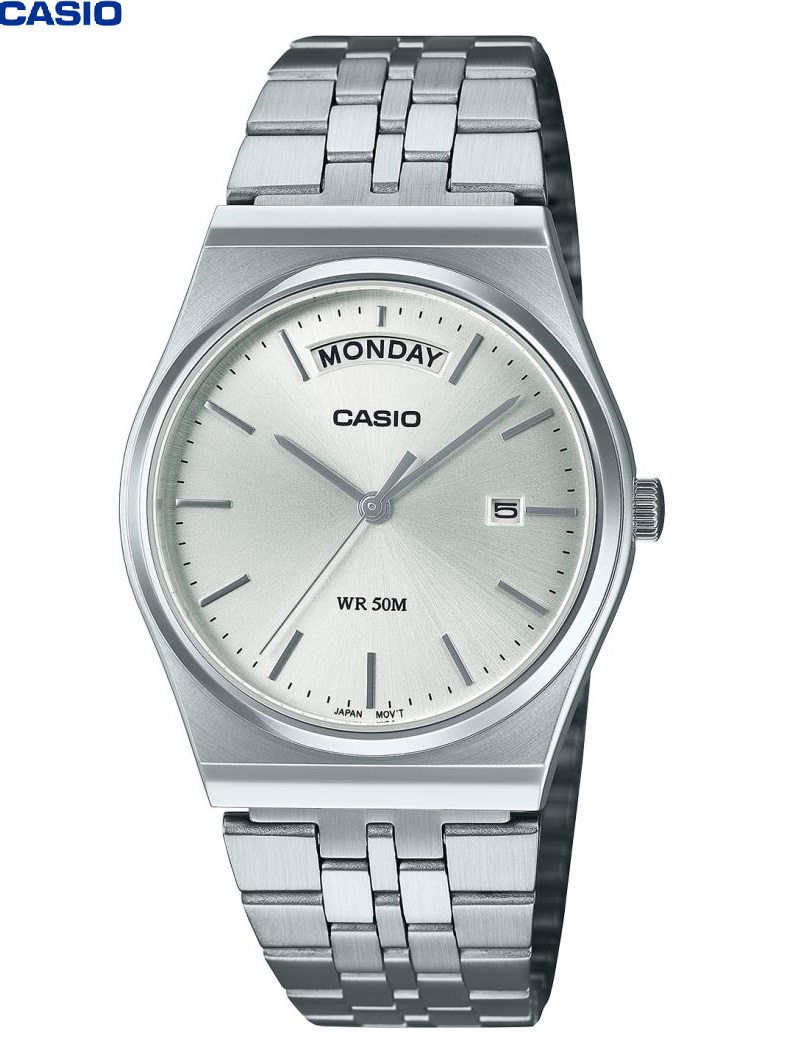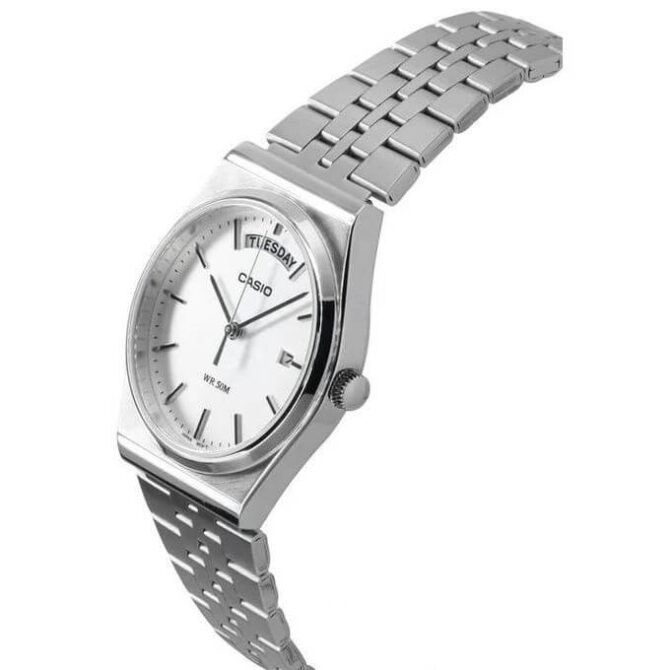 Casio Montre Homme Cadran blanc Bracelet acier inoxydable silver etanche Quartz–mtp-b146d-7avdf