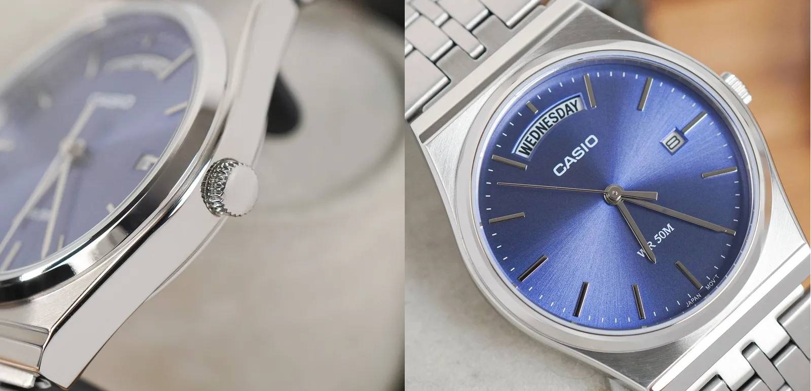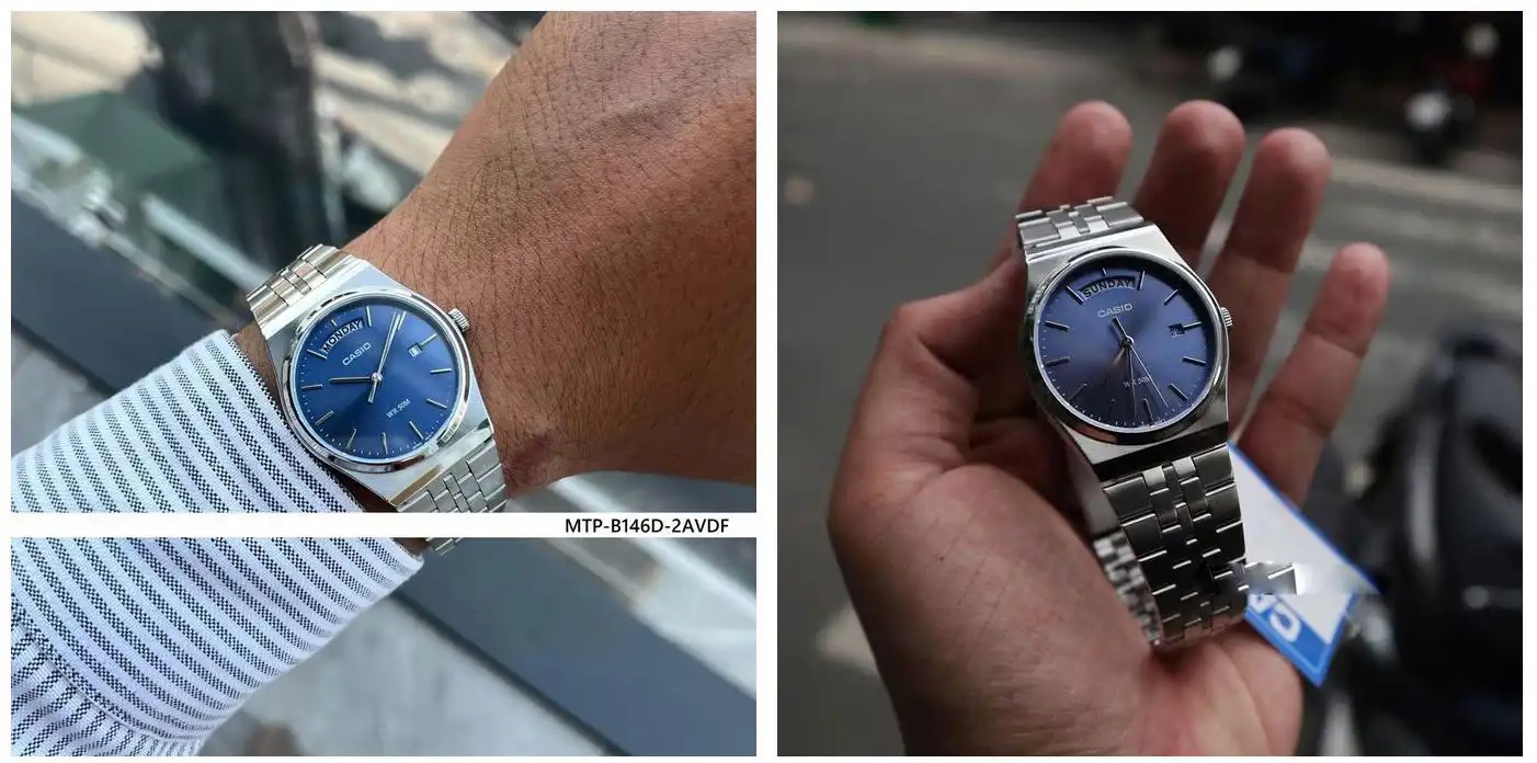 Montre Casio authentique pour homme mtp-b146d-2avdf – Cette nouvelle ligne de montres analogiques évoque le style des années 1980 avec son design nostalgique, son guichet de jour unique et son cadran minimaliste, alliant élégance et lisibilité. Diamètre du cadran : 35 mm. Étanchéité : 50 m.