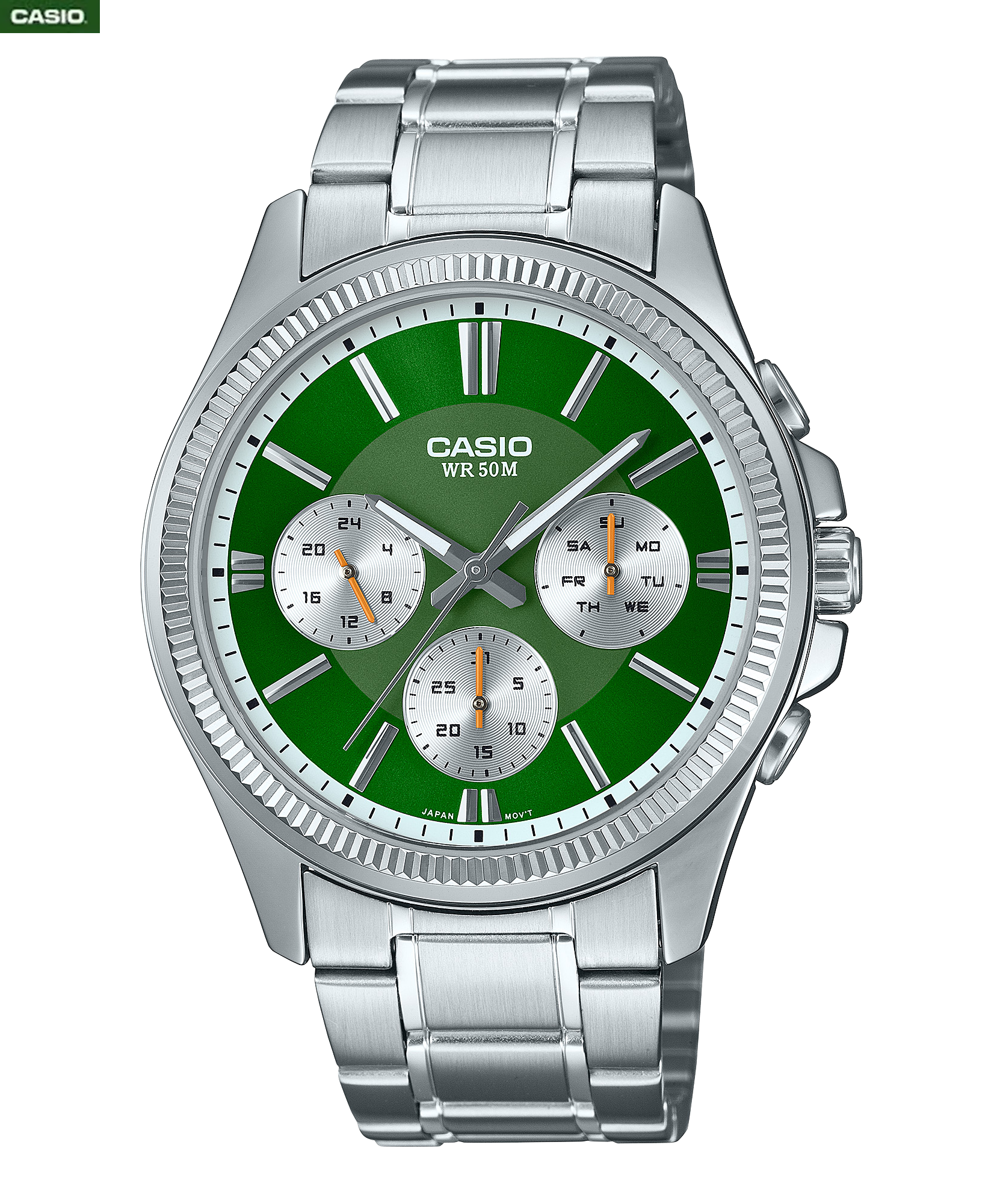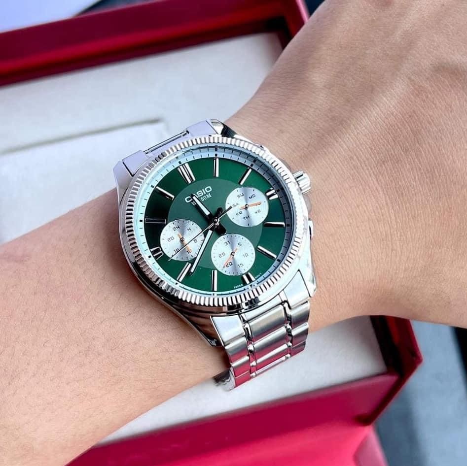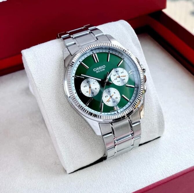 Casio Montre homme elegante avec bracelet en métal sportive 6 aiguilless étanche-mtp-1375d-3avdf