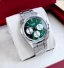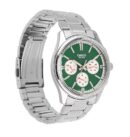 - Boîtier et bracelet en acier inoxydable, fermoir à bouton poussoir.Verre minéral, affichage à 3 cadrans (jour, date et 24 heures