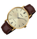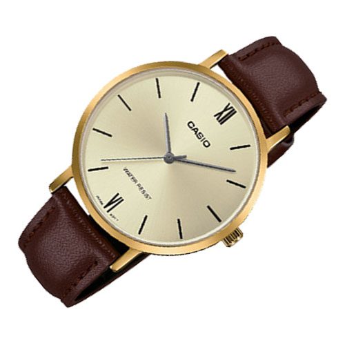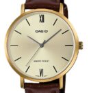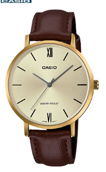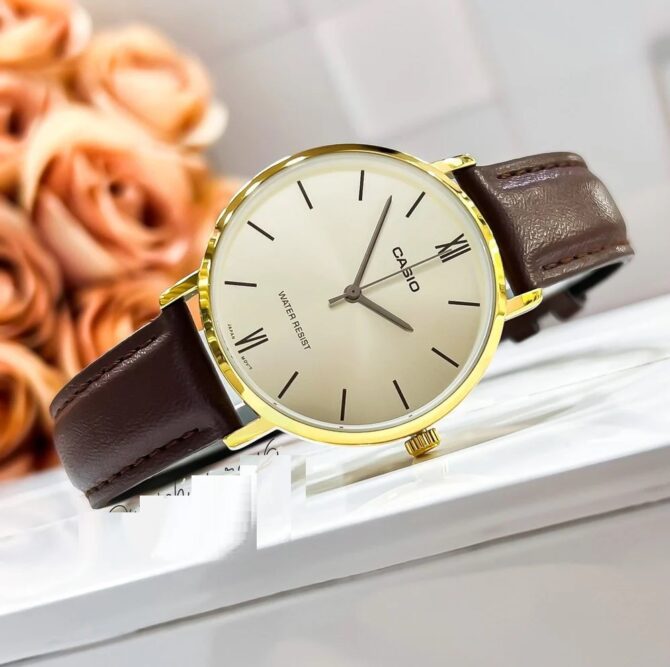 Casio Montre pour femme Bracelet en cuir – Lunette plaquée or Étanche-casio ltp-vt01gl-9budf