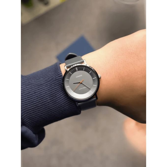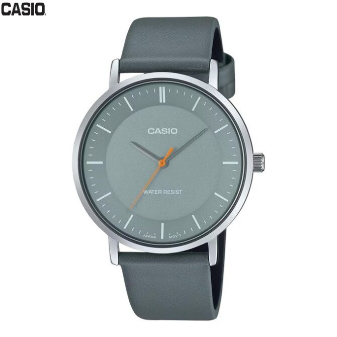 Casio Montre pour homme Bracelet en cuir Cadran Gris incurve etanche-mtp-vt04l-8edf