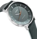 - Couleur: Boîtier : argent Bouclier : gris-bleu Index : blanc Aiguilless : Argent / Aiguilless des secondes : Orange Bracelet : gris-bleu