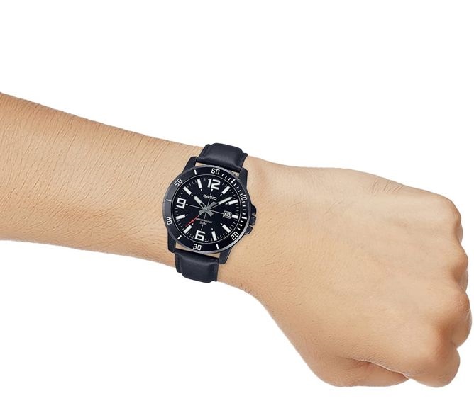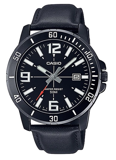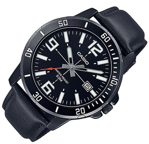 Casio Montres homme Bracelets en cuir Boîtier plaqué ion noir Étanche WR50M-mtp-vd01bl-1bvudf