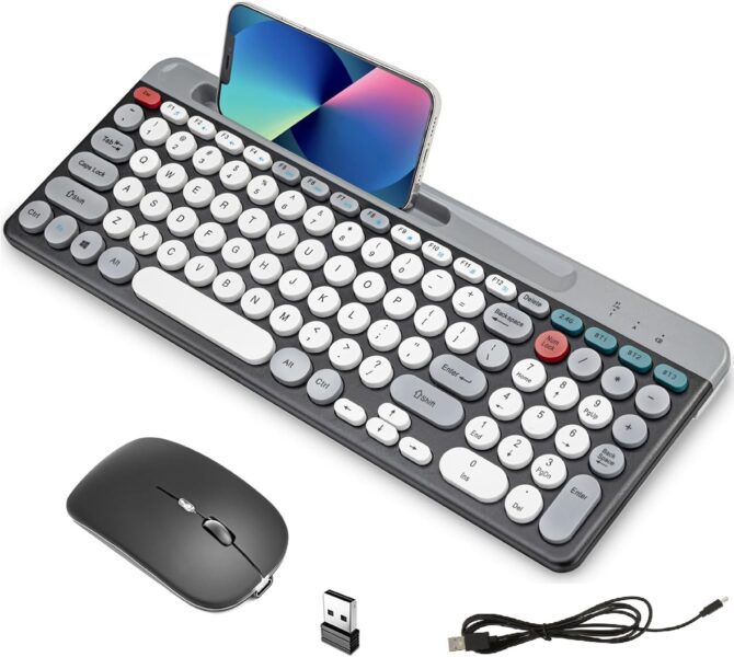 - Connectivité multi-appareils : l’ensemble clavier-souris prend en charge la connexion avec jusqu’à 3 appareils BT simultanément, avec une distance de 10 m/32,8 pieds. Il convient à divers systèmes d’exploitation, notamment WIN7 ou version ultérieure, OS X et Android.
