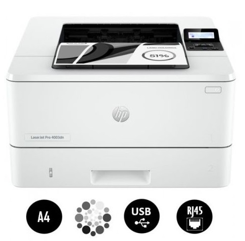 - Impression recto/verso: Automatique Fonctionne avec: 1 (noir) Connectivité: 1 port USB 2.0 haut débit; 1 port hôte USB à l’arrière; Réseau Gigabit Ethernet 10/100/1000BASE-T; 802.3az(EEE)La série HP LaserJet Pro 4003 remplace la série HP LaserJet Pro M404.
