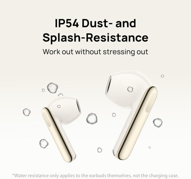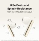 - Résistance à la poussière et aux éclaboussures IP54 : entraînez-vous en toute sérénité grâce à la résistance à la poussière et aux éclaboussures IP54. *La résistance à l’eau concerne uniquement les écouteurs, et non le boîtier de charge. *À titre indicatif uniquement ; l’expérience réelle peut varier.