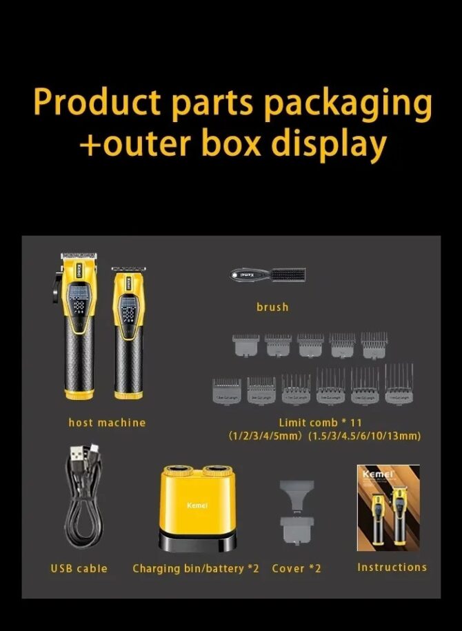 Kemei 2 Tondeuse a cheveux et rasoir sans fil KM-8561 Pro Batterie longue durée 2500 mAh Meilleures Réglables