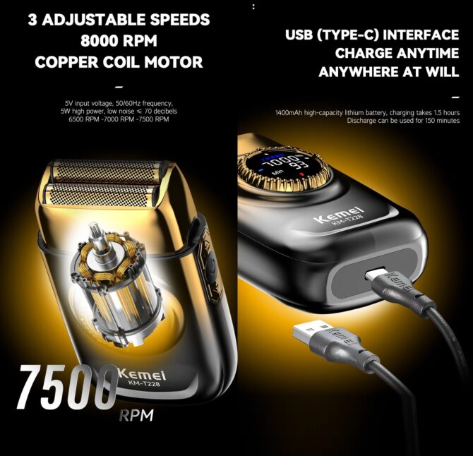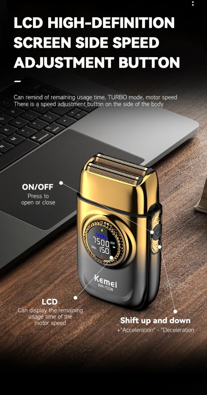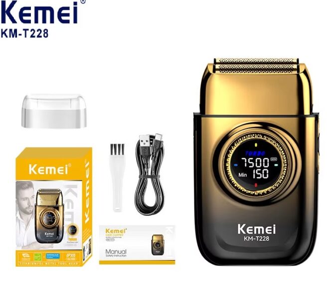- Rasoir électrique KEMEI 228 : Rasoir électrique pour homme à double lame, il élimine les poils de barbe jusqu’à 0,01 mm. Idéal pour un rasage à sec nomade ou un rasage classique avec mousse, même pour les barbes sensibles et denses. Rase en douceur, des poils fins aux barbes épaisses.