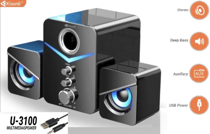 Kisonli U-3100 Mini enceinte surround avec basses profondes stéréo multimédia portable pour ordinateur