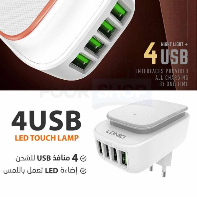 Chargeur Mural pour Smartphone 4.4 A Ports avec lampe LED 4A