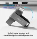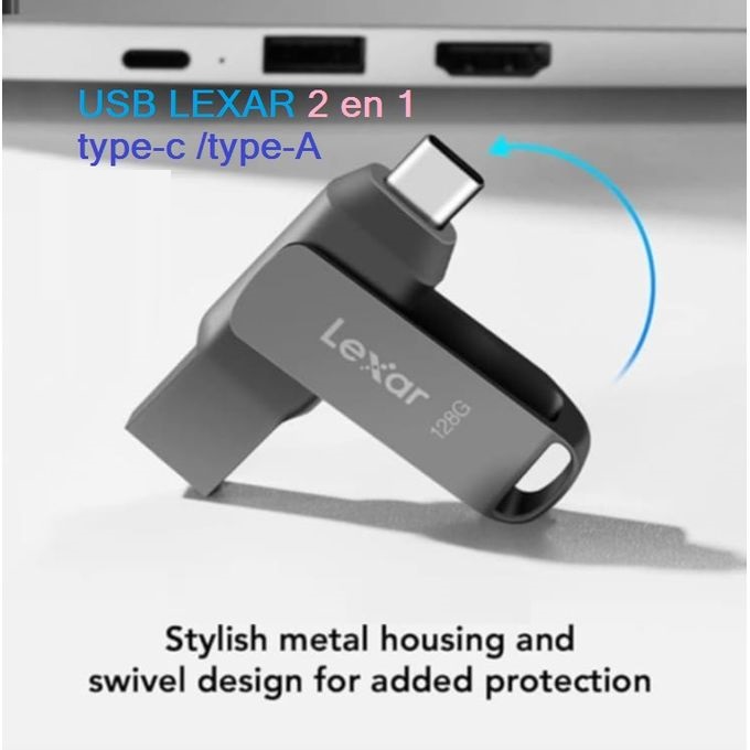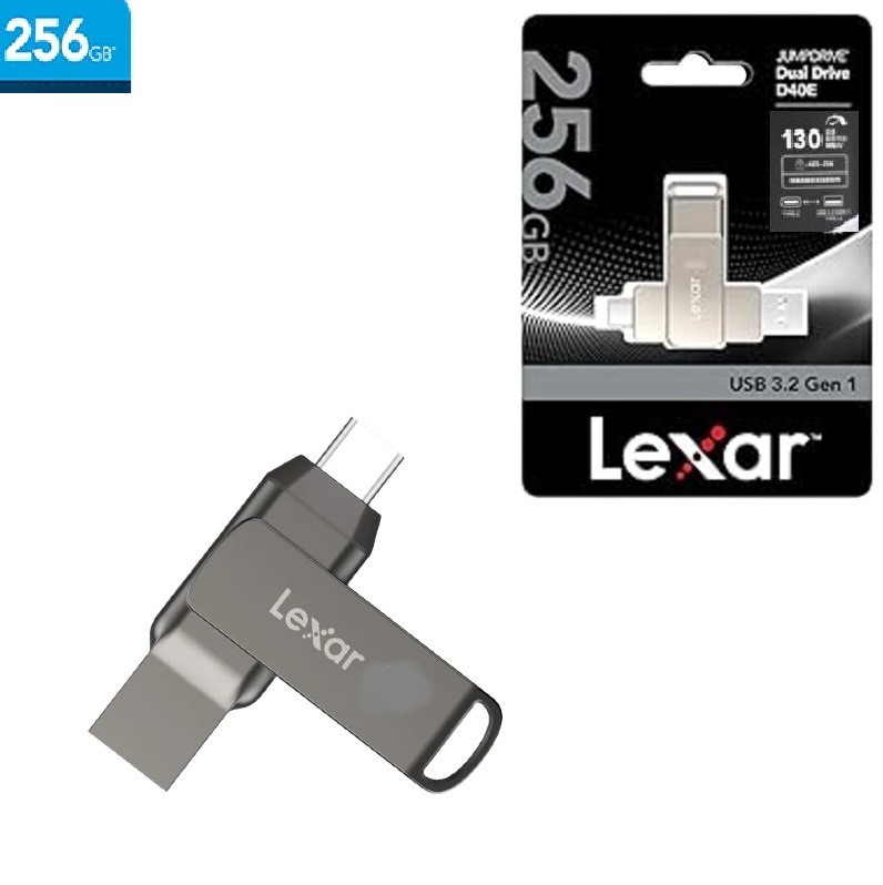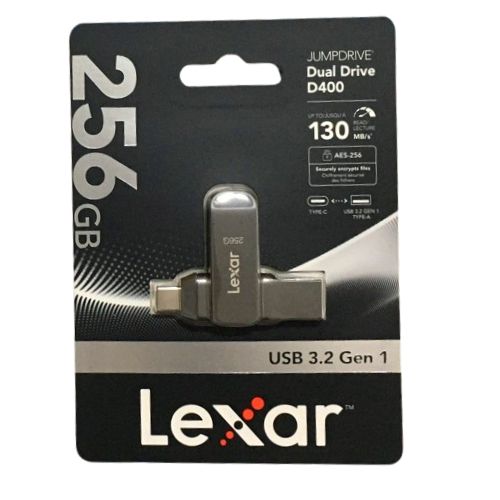- Cle USB 3.1 Lexar JumpDrive Dual Drive D400 256 GB USB 3.2 Type-C et Type-A, jusqu’à 130 Mo/s