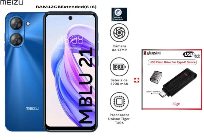 Meizu Telephone Smartphone Mblu 21 double SIM Stokage 128gb Ram 12GB(6 + 6) Extended 6,79″Ocean blue+cle kingston type C 32GB