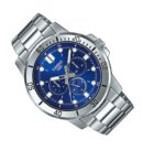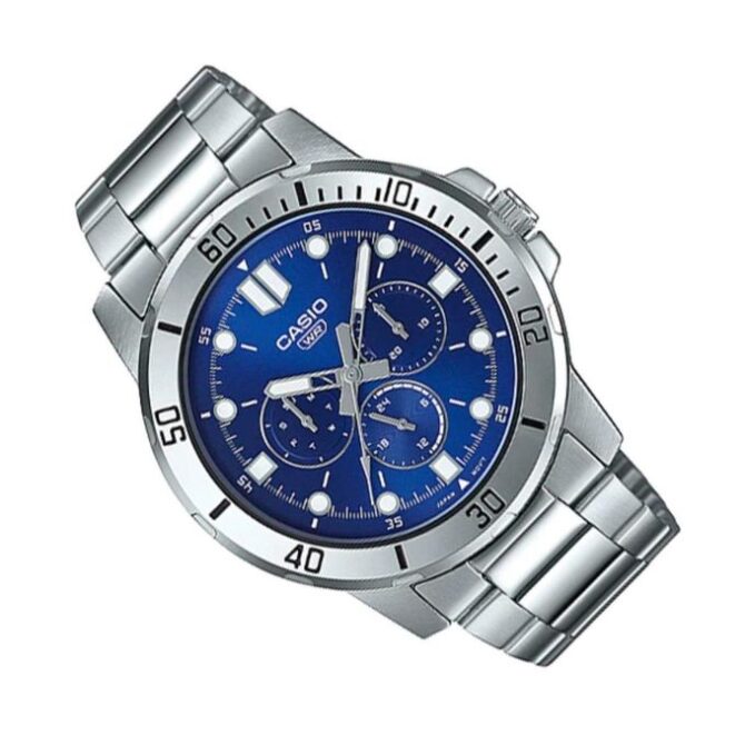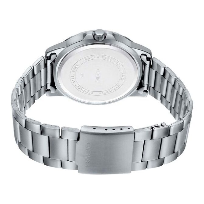 Fermoir 3 fois à une touche Bracelet en acier inoxydable Verre minéral Indicateur de la date, du jour et des 24 heures Résistant à l’eau Indication de l’heure régulière Analogique: 3 aiguilles (heure, minute, seconde), 3 cadrans (date, jour, 24 heures) Précision: ± 20 secondes par mois Env. autonomie de la batterie: 3 ans sur le SR920SW Taille du boîtier: 49 × 45 × 8,7 mm Poids total: 110 g