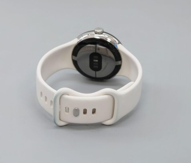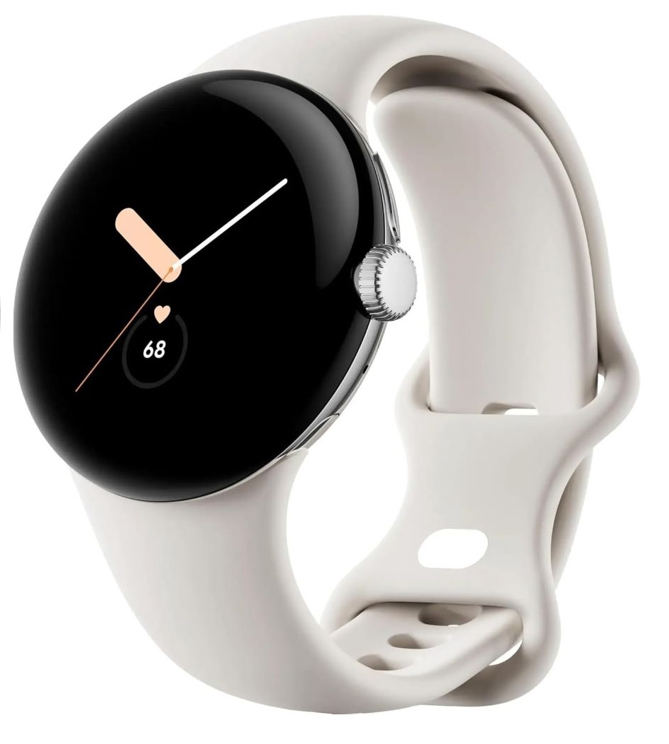 Montre google Pixel Watch fitbit (Wi-Fi uniquement )41mm Cadran en acier inoxydable argenté avec bracelet actif couleur craie