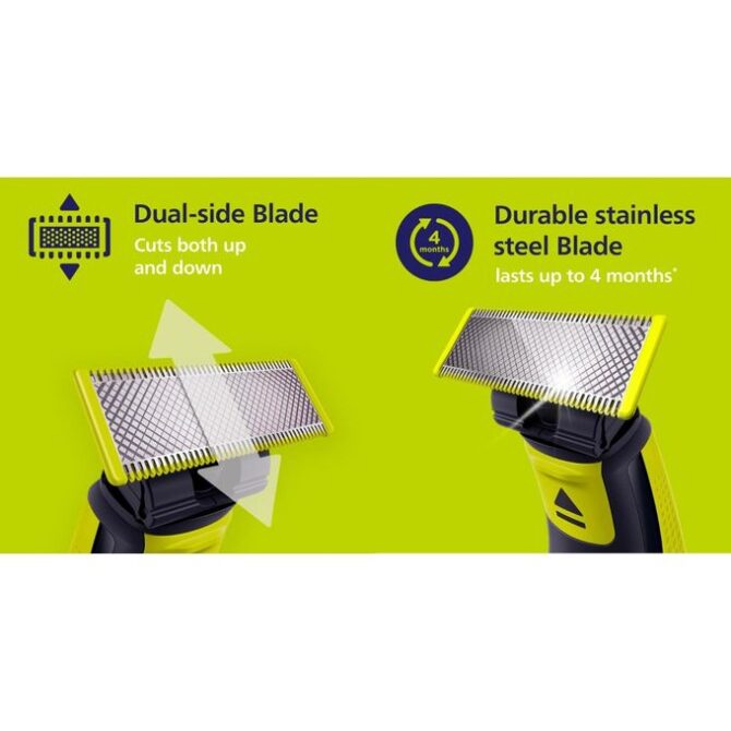 - Technologie OneBlade unique en son genre S’adapte à toutes les pièces à main OneBlade Lame qui ne s’émousse pas facilement Lame à deux côtés Sous l’eau ou à sec