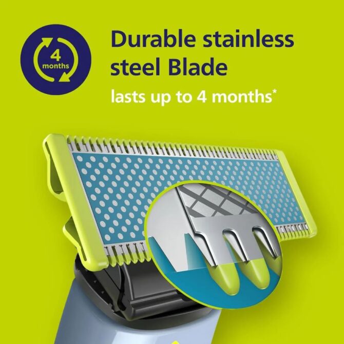 • La technologie unique OneBlade offre un rasage rapide et propre tout en prenant soin de la peau pour les rasoirs débutants.Lame anti-friction avec une couche de micro billes de verre, une plaque de protection sur le dessus du cutter, ainsi que des pointes arrondies, permet à la lame de glisser en douceur et protège la peau des éraflures et des coupures pendant le rasage.
