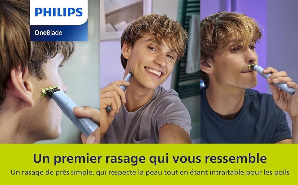 • La technologie unique OneBlade offre un rasage rapide et propre tout en prenant soin de la peau pour les rasoirs débutants.Lame anti-friction avec une couche de micro billes de verre, une plaque de protection sur le dessus du cutter, ainsi que des pointes arrondies, permet à la lame de glisser en douceur et protège la peau des éraflures et des coupures pendant le rasage.