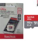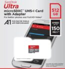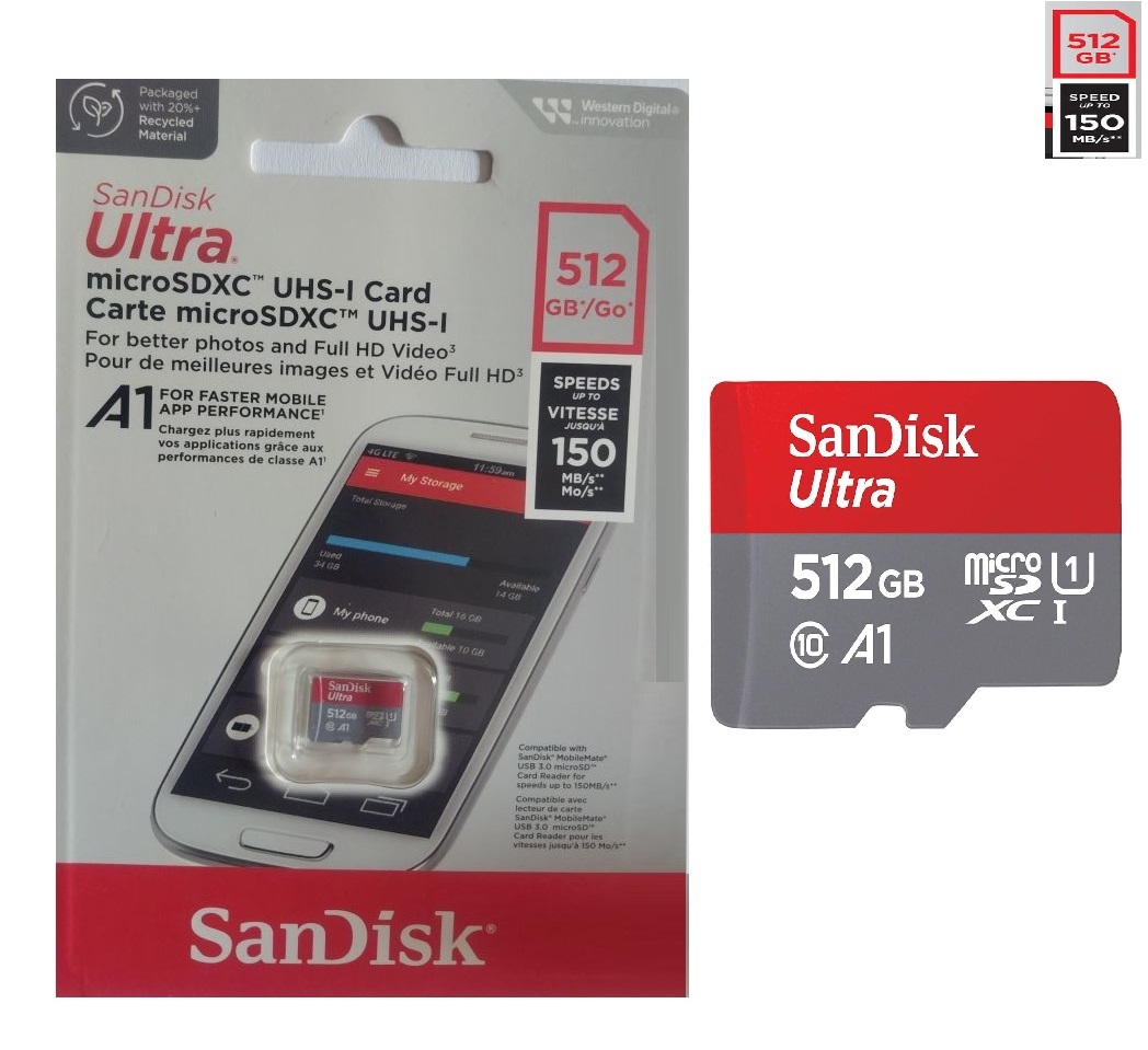 Sandisk Ultra Carte mémoire Ultra MicroSDXC UHS-I 512GB vitesse 150 Mo/s, C10, U1, Full HD, A1