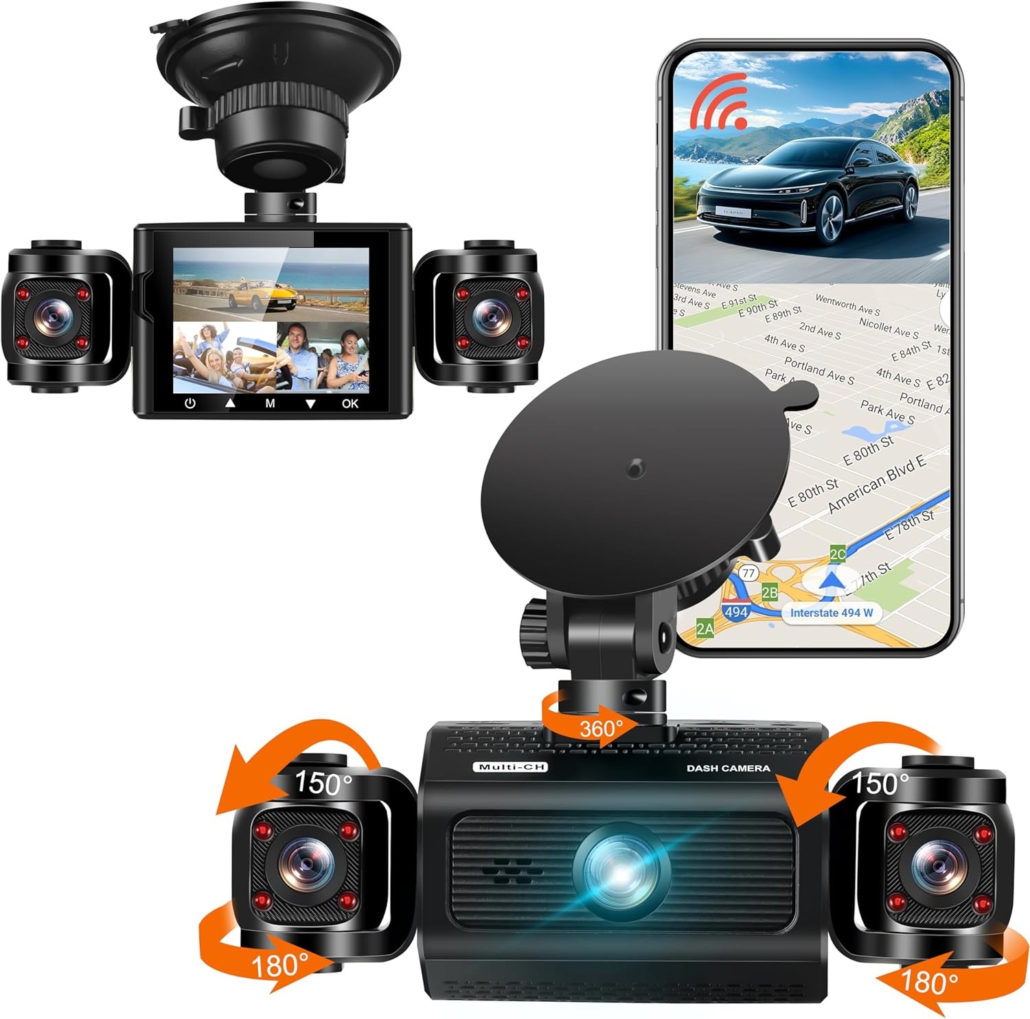 - Caméra de tableau de bord à 270° sur tous les côtés 3 canaux】La caméra de tableau de bord à 3 canaux possède 3 objectifs, tous capables d’enregistrer simultanément une vidéo FHD 2K. Il peut capturer simultanément le côté gauche et le côté droit de l’intérieur du véhicule. Les 3 objectifs avant peuvent ajuster l’angle de prise de vue afin que vous puissiez capturer plus de détails comme vous le souhaitez. Il peut facilement couvrir 270 degrés, garantissant qu’il n’y a pas d’angle mort autour de la voiture. Vous pouvez utiliser un objectif pour capturer l’intérieur de votre véhicule.