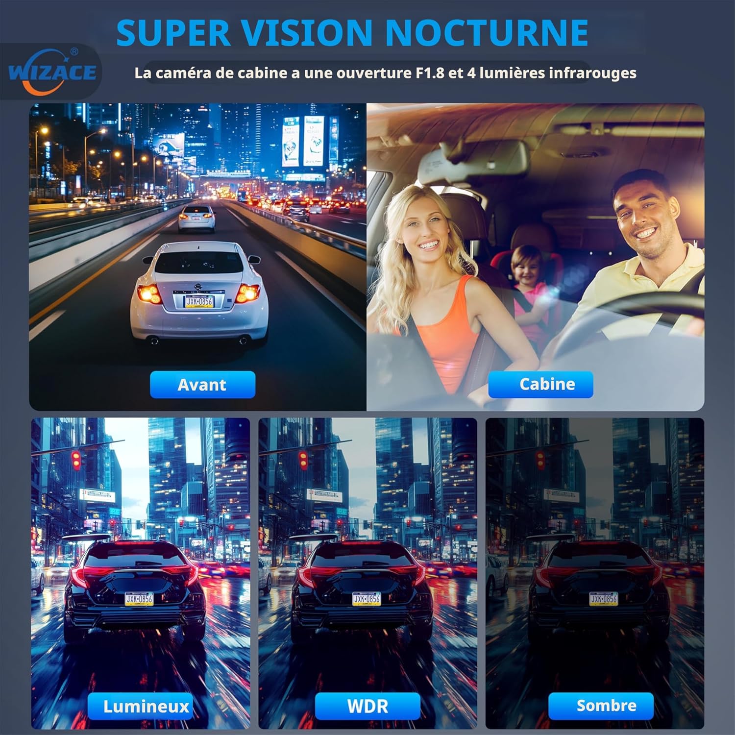 - 【Super vision nocturne】La caméra de bord dispose de 8 LED infrarouges et d’une large plage dynamique pour éviter la surexposition causée par les phares, et ajuste automatiquement l’équilibre en cas de faible luminosité ou d’exposition. Il détecte les changements soudains de luminosité et ajuste automatiquement la luminosité pour un enregistrement clair. Les caméras intérieures avant et arrière avec lumières infrarouges enregistrent des images nettes de l’habitacle même dans un environnement non éclairé, améliorant grandement la sécurité de conduite nocturne.
