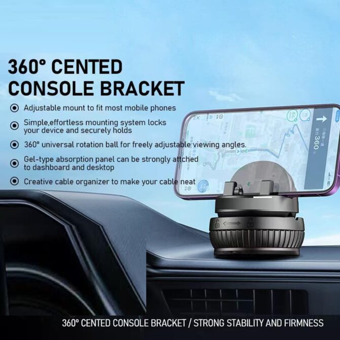 Support de telephone portable pour tableau de bord de voiture avec rotation 360° antidérapant et verrouillage par ventouse