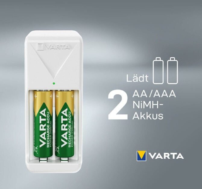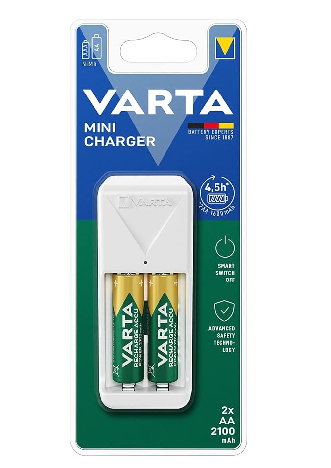 VARTA chargeur pour piles rechargeables, charge 2 AA/AAA simultanément Mini Charger incl. 2X AA 2100mAh